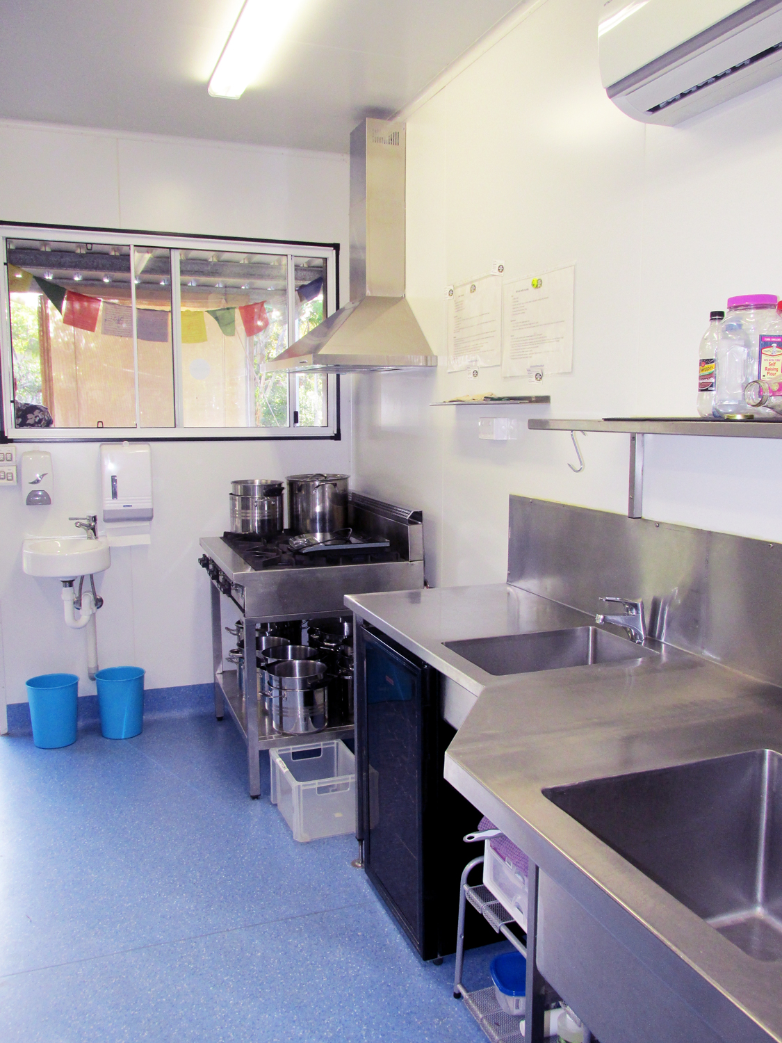 Storage at the rear of the facility, along with a PWD-accessible toilet and shower, complete the well-appointed workshop kitchen.